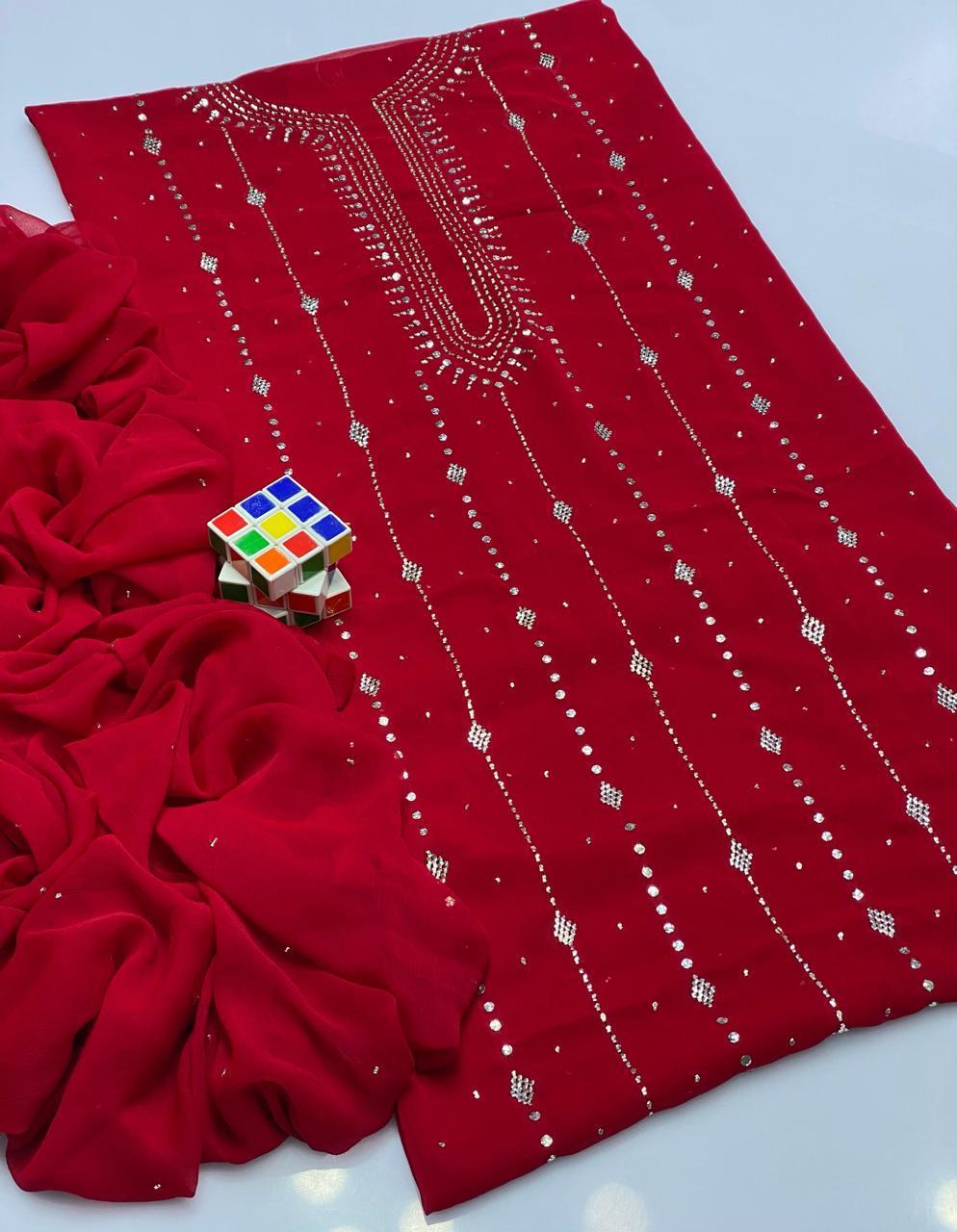 • Shirt Fabric: Chiffon• Pattern: Hand Work• Shirt Front Pattern: Embroidered• Neckline: Embroidered• Sleeves Pattern: Plain• Daman: Embroidered• Shirt Back Pattern: Plain• Dupatta Fabric: Chiffon• Dupatta Pattern: Embroidered• Number Of Pieces: 2 Pcs• Package Includes: 1 x Shirt, 1 x Dupatta• Shirt Cutting: 2.5 Meter• Dupatta Cutting: 2.5 Meter• Color: Red• Note: There might be an error of 1-3 cm due to manual measurement, and slight color differences may occur as a result of varying lighting and monitor effects.